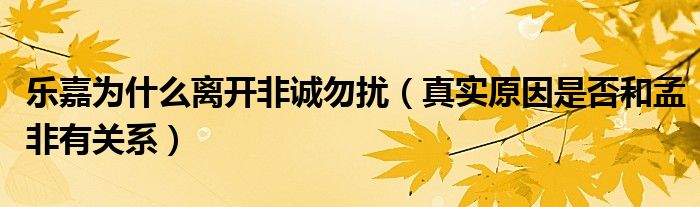 大家好,伊人來為大家解答以上問題。樂嘉為什么離開非誠勿擾,真實(shí)原因是否和孟非有關(guān)系很多人還不知道,現(xiàn)在讓我們一起來看看吧!