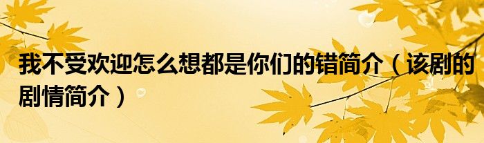 大家好,伊人來(lái)為大家解答以上問(wèn)題。我不受歡迎怎么想都是你們的錯(cuò)簡(jiǎn)介,該劇的劇情簡(jiǎn)介很多人還不知道,現(xiàn)在讓我們一起來(lái)看看吧!