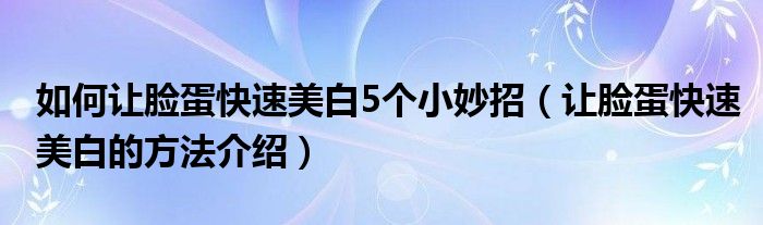 大家好,伊人來為大家解答以上問題。如何讓臉蛋快速美白5個(gè)小妙招,讓臉蛋快速美白的方法介紹很多人還不知道,現(xiàn)在讓我們一起來看看吧!