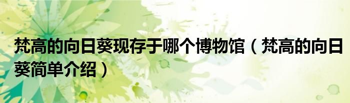 1、梵高的《向日葵》現(xiàn)收藏于德國慕尼黑新美術館、英國倫敦國家美術館、日本東京星勛美術館、荷蘭阿姆斯特丹梵高美術館、美國費城美術館。