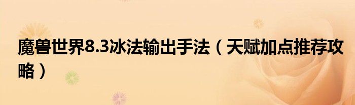 大家好,伊人來(lái)為大家解答以上問(wèn)題。魔獸世界8.3冰法輸出手法,天賦加點(diǎn)推薦攻略很多人還不知道,現(xiàn)在讓我們一起來(lái)看看吧!