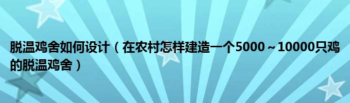 大家好,伊人來(lái)為大家解答以上問(wèn)題。脫溫雞舍如何設(shè)計(jì),在農(nóng)村怎樣建造一個(gè)5000~10000只雞的脫溫雞舍很多人還不知道,現(xiàn)在讓我們一起來(lái)看看吧!