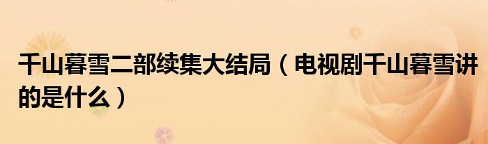 大家好,伊人來(lái)為大家解答以上問(wèn)題。千山暮雪二部續(xù)集大結(jié)局,電視劇千山暮雪講的是什么很多人還不知道,現(xiàn)在讓我們一起來(lái)看看吧!
