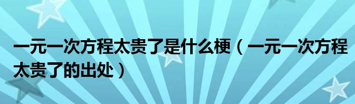 大家好,伊人來為大家解答以上問題。一元一次方程太貴了是什么梗,一元一次方程太貴了的出處很多人還不知道,現(xiàn)在讓我們一起來看看吧!