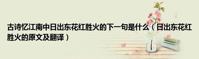 大家好,伊人來為大家解答以上問題。古詩憶江南中日出東花紅勝火的下一句是什么,日出東花紅勝火的原文及翻譯很多人還不知道,現(xiàn)在讓我們一起來看看吧!