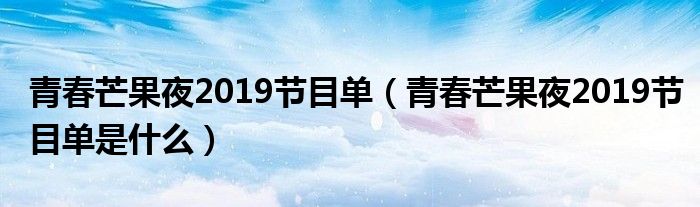 大家好,伊人來為大家解答以上問題。青春芒果夜2019節(jié)目單,青春芒果夜2019節(jié)目單是什么很多人還不知道,現在讓我們一起來看看吧!