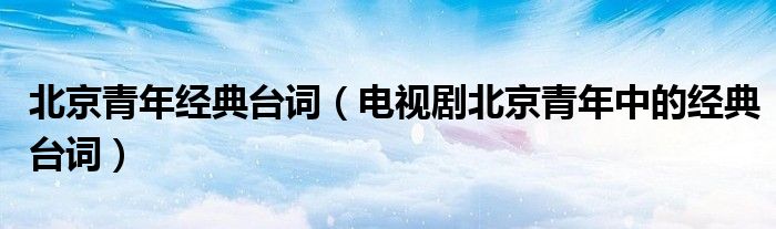大家好,伊人來為大家解答以上問題。北京青年經(jīng)典臺詞,電視劇北京青年中的經(jīng)典臺詞很多人還不知道,現(xiàn)在讓我們一起來看看吧!