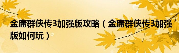 大家好,伊人來為大家解答以上問題。金庸群俠傳3加強版攻略,金庸群俠傳3加強版如何玩很多人還不知道,現(xiàn)在讓我們一起來看看吧!