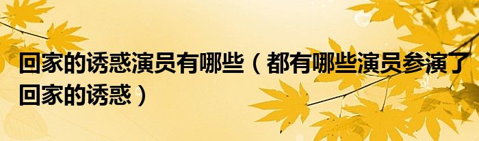 大家好,伊人來為大家解答以上問題。回家的誘惑演員有哪些,都有哪些演員參演了回家的誘惑很多人還不知道,現(xiàn)在讓我們一起來看看吧!