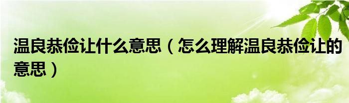 大家好,伊人來為大家解答以上問題。溫良恭儉讓什么意思,怎么理解溫良恭儉讓的意思很多人還不知道,現(xiàn)在讓我們一起來看看吧!