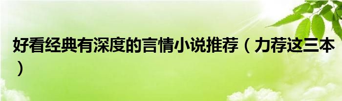 大家好,伊人來為大家解答以上問題。好看經(jīng)典有深度的言情小說推薦,力薦這三本很多人還不知道,現(xiàn)在讓我們一起來看看吧!