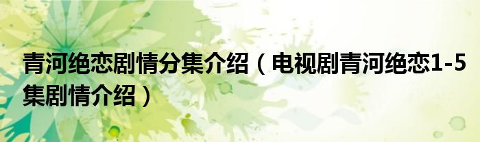 大家好,伊人來(lái)為大家解答以上問(wèn)題。青河絕戀劇情分集介紹,電視劇青河絕戀1-5集劇情介紹很多人還不知道,現(xiàn)在讓我們一起來(lái)看看吧!