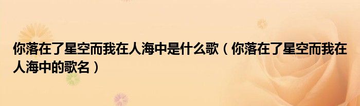大家好,伊人來為大家解答以上問題。你落在了星空而我在人海中是什么歌,你落在了星空而我在人海中的歌名很多人還不知道,現(xiàn)在讓我們一起來看看吧!