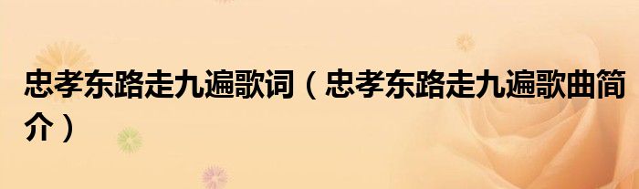 61、《忠孝東路走九遍》(大陸版名《忠孝東路走九遍》)是一首由吳宇康作詞,郭子作曲,涂瑩編曲,動力火車演唱的歌曲(代表作)。收錄于動力列車2001年2月13日發(fā)行的同名專輯《走九遍》(大陸版名《忠孝東路走九遍》)。