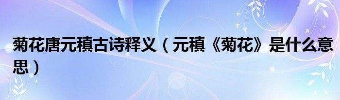 大家好,伊人來(lái)為大家解答以上問(wèn)題。菊花唐元稹古詩(shī)釋義,元稹《菊花》是什么意思很多人還不知道,現(xiàn)在讓我們一起來(lái)看看吧!