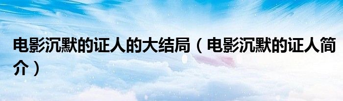 大家好,伊人來為大家解答以上問題。電影沉默的證人的大結局,電影沉默的證人簡介很多人還不知道,現在讓我們一起來看看吧!