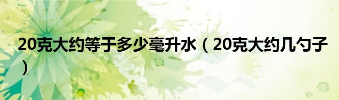 大家好,小生來(lái)為大家講解下。20克大約等于多少毫升水,20克大約幾勺子很多人還不知道,現(xiàn)在讓我們一起來(lái)看看吧!