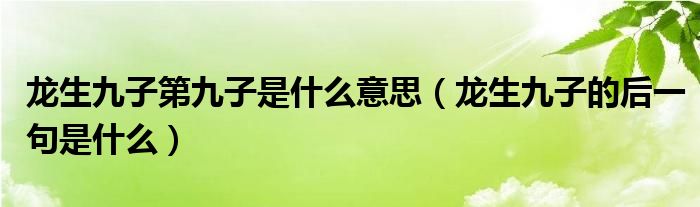 大家好,小生來為大家講解下。龍生九子第九子是什么意思,龍生九子的后一句是什么很多人還不知道,現(xiàn)在讓我們一起來看看吧!