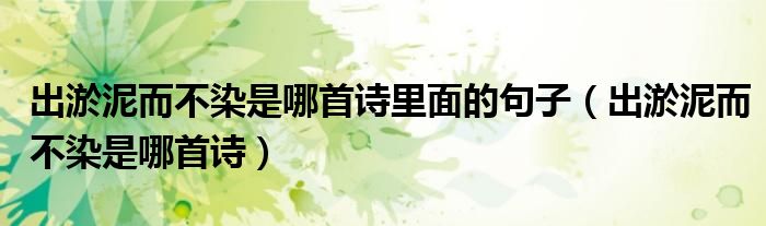 大家好,小生來為大家講解下。出淤泥而不染是哪首詩里面的句子,出淤泥而不染是哪首詩很多人還不知道,現(xiàn)在讓我們一起來看看吧!