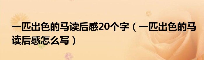 大家好,小生來(lái)為大家講解下。一匹出色的馬讀后感20個(gè)字,一匹出色的馬讀后感怎么寫(xiě)很多人還不知道,現(xiàn)在讓我們一起來(lái)看看吧!