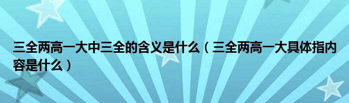 大家好,小生來為大家講解下。三全兩高一大中三全的含義是什么,三全兩高一大具體指內(nèi)容是什么很多人還不知道,現(xiàn)在讓我們一起來看看吧!