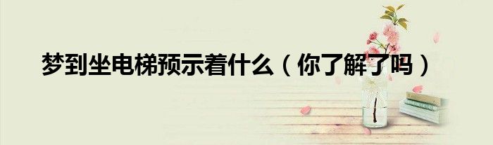 大家好,伊人來(lái)為大家解答以上問(wèn)題。夢(mèng)到坐電梯預(yù)示著什么,你了解了嗎很多人還不知道,現(xiàn)在讓我們一起來(lái)看看吧!