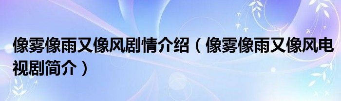 大家好,伊人來為大家解答以上問題。像霧像雨又像風劇情介紹,像霧像雨又像風電視劇簡介很多人還不知道,現(xiàn)在讓我們一起來看看吧!
