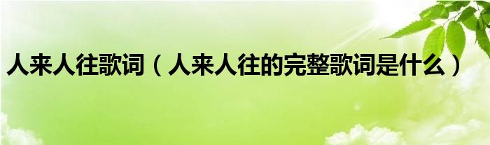 大家好,伊人來為大家解答以上問題。人來人往歌詞,人來人往的完整歌詞是什么很多人還不知道,現(xiàn)在讓我們一起來看看吧!
