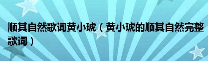 大家好,伊人來為大家解答以上問題。順其自然歌詞黃小琥,黃小琥的順其自然完整歌詞很多人還不知道,現(xiàn)在讓我們一起來看看吧!