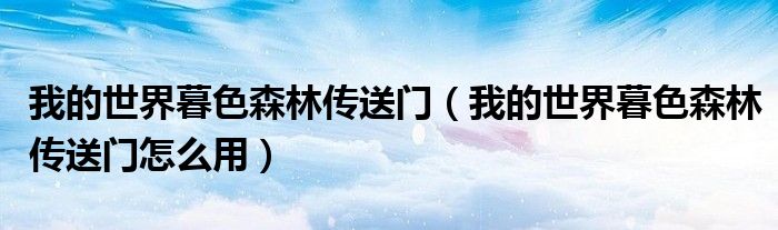 大家好,伊人來為大家解答以上問題。我的世界暮色森林傳送門,我的世界暮色森林傳送門怎么用很多人還不知道,現(xiàn)在讓我們一起來看看吧!
