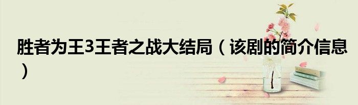 大家好,伊人來為大家解答以上問題。勝者為王3王者之戰(zhàn)大結(jié)局,該劇的簡介信息很多人還不知道,現(xiàn)在讓我們一起來看看吧!