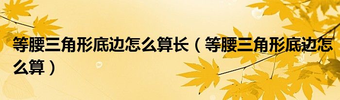 大家好,小生來(lái)為大家講解下。等腰三角形底邊怎么算長(zhǎng),等腰三角形底邊怎么算很多人還不知道,現(xiàn)在讓我們一起來(lái)看看吧!