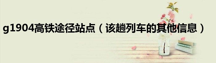 大家好,伊人來為大家解答以上問題。g1904高鐵途徑站點,該趟列車的其他信息很多人還不知道,現(xiàn)在讓我們一起來看看吧!