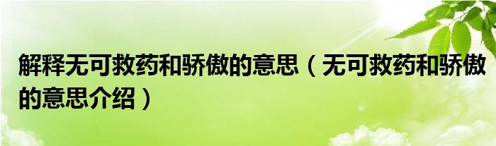 大家好,伊人來為大家解答以上問題。解釋無可救藥和驕傲的意思,無可救藥和驕傲的意思介紹很多人還不知道,現(xiàn)在讓我們一起來看看吧!
