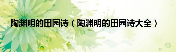 大家好,伊人來為大家解答以上問題。陶淵明的田園詩,陶淵明的田園詩大全很多人還不知道,現(xiàn)在讓我們一起來看看吧!