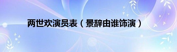 大家好,伊人來為大家解答以上問題。兩世歡演員表,景辭由誰飾演很多人還不知道,現(xiàn)在讓我們一起來看看吧!