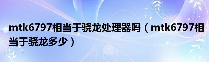 大家好,小生來(lái)為大家講解下。mtk6797相當(dāng)于驍龍?zhí)幚砥鲉?,mtk6797相當(dāng)于驍龍多少很多人還不知道,現(xiàn)在讓我們一起來(lái)看看吧!