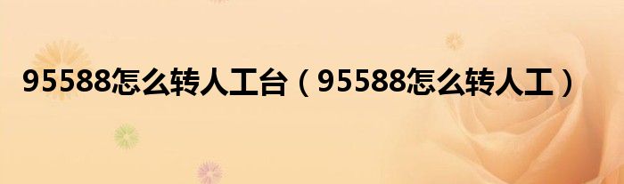 大家好,小生來(lái)為大家講解下。95588怎么轉(zhuǎn)人工臺(tái),95588怎么轉(zhuǎn)人工很多人還不知道,現(xiàn)在讓我們一起來(lái)看看吧!