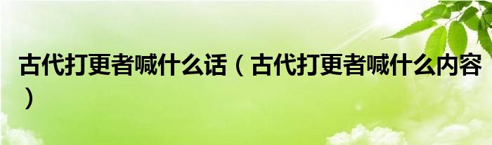 大家好,小生來為大家講解下。古代打更者喊什么話,古代打更者喊什么內容很多人還不知道,現在讓我們一起來看看吧!