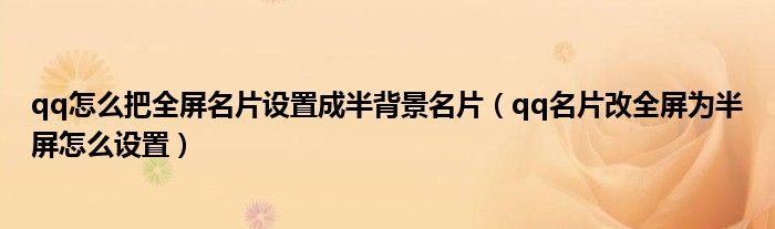 大家好,小生來為大家講解下。qq怎么把全屏名片設置成半背景名片,qq名片改全屏為半屏怎么設置很多人還不知道,現在讓我們一起來看看吧!