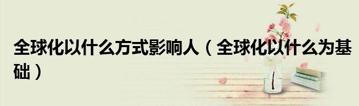大家好,小生來為大家講解下。全球化以什么方式影響人,全球化以什么為基礎很多人還不知道,現(xiàn)在讓我們一起來看看吧!
