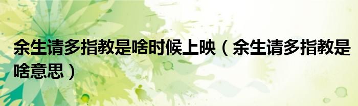 大家好,小生來為大家講解下。余生請多指教是啥時候上映,余生請多指教是啥意思很多人還不知道,現(xiàn)在讓我們一起來看看吧!