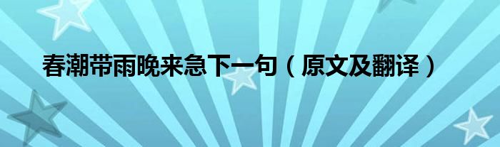 大家好,伊人來為大家解答以上問題。春潮帶雨晚來急下一句,原文及翻譯很多人還不知道,現(xiàn)在讓我們一起來看看吧!