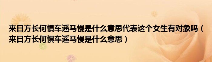 大家好,小生來為大家講解下。來日方長何懼車遙馬慢是什么意思代表這個女生有對象嗎,來日方長何懼車遙馬慢是什么意思很多人還不知道,現(xiàn)在讓我們一起來看看吧!
