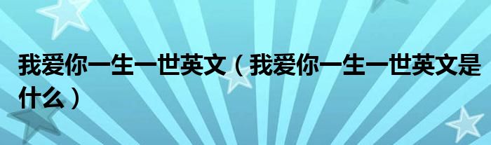 大家好,伊人來為大家解答以上問題。我愛你一生一世英文,我愛你一生一世英文是什么很多人還不知道,現(xiàn)在讓我們一起來看看吧!