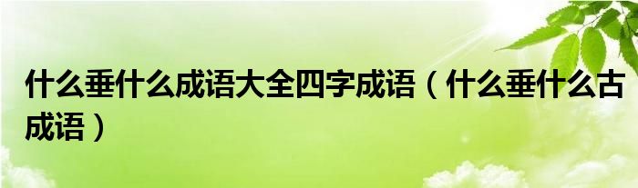 大家好,小生來為大家講解下。什么垂什么成語大全四字成語,什么垂什么古成語很多人還不知道,現(xiàn)在讓我們一起來看看吧!