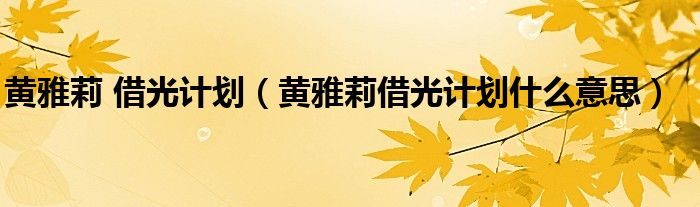 大家好,小生來為大家講解下。黃雅莉 借光計劃,黃雅莉借光計劃什么意思很多人還不知道,現(xiàn)在讓我們一起來看看吧!
