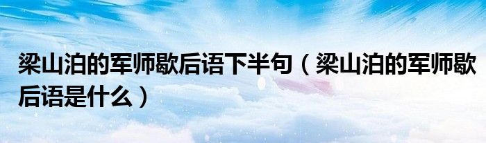 大家好,小生來為大家講解下。梁山泊的軍師歇后語下半句,梁山泊的軍師歇后語是什么很多人還不知道,現(xiàn)在讓我們一起來看看吧!