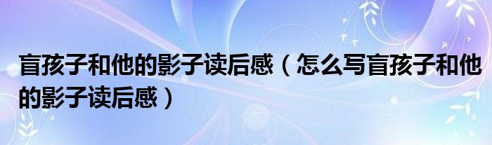 大家好,伊人來為大家解答以上問題。盲孩子和他的影子讀后感,怎么寫盲孩子和他的影子讀后感很多人還不知道,現(xiàn)在讓我們一起來看看吧!