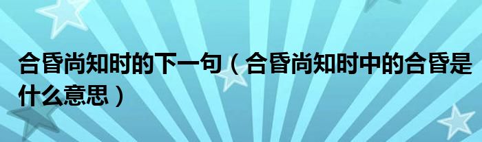 大家好,小生來為大家講解下。合昏尚知時的下一句,合昏尚知時中的合昏是什么意思很多人還不知道,現(xiàn)在讓我們一起來看看吧!